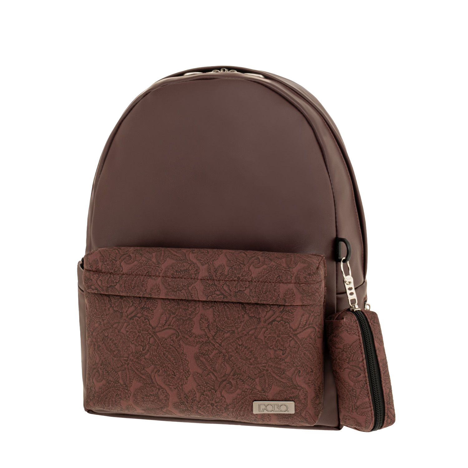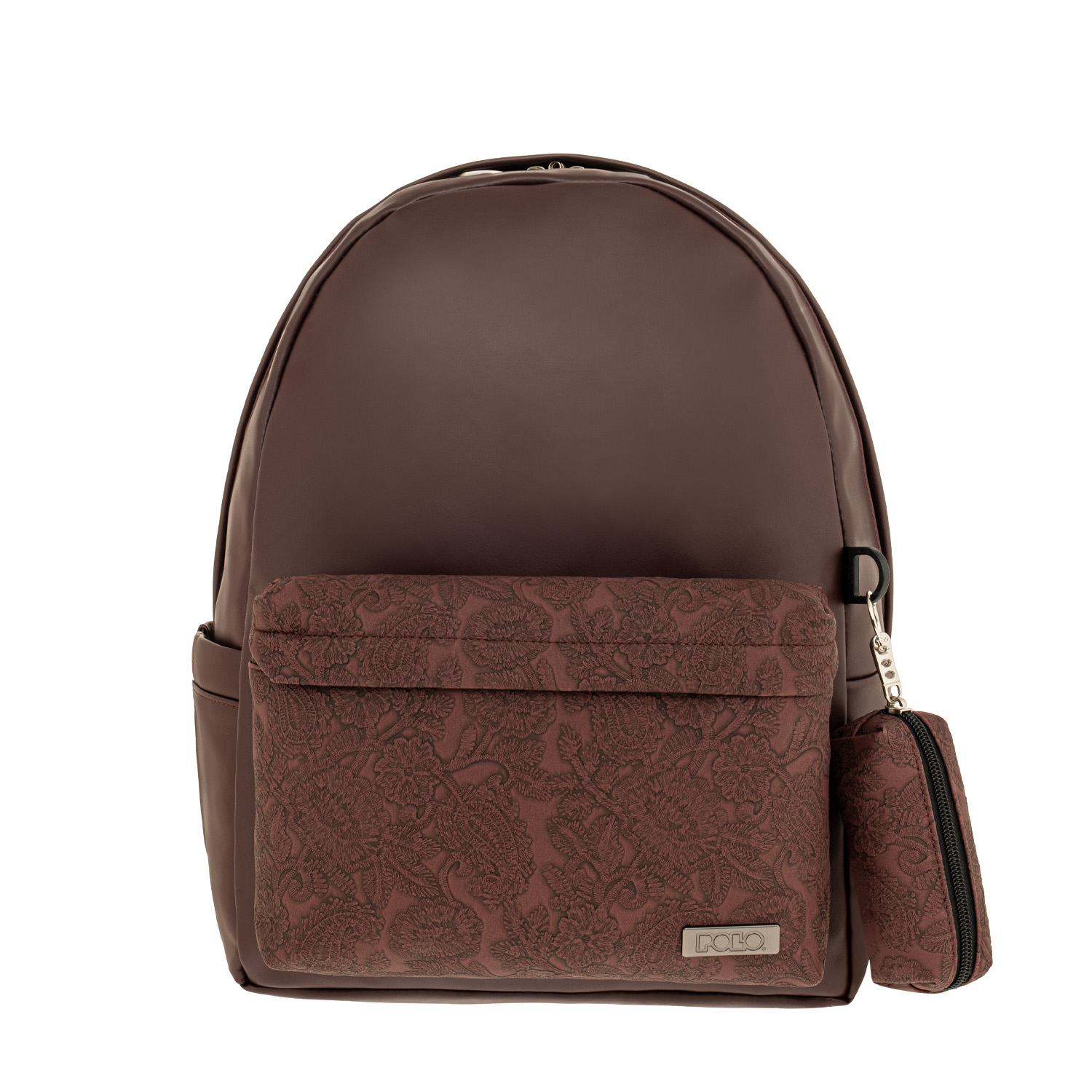 1 κεντρική θήκη με εσωτερικό neoprene χώρισμα για αποθήκευση και μεταφορά laptop 15,4". και εσωτερική θέση κινητού τηλεφώνου. (Προτείνεται να ελέγξετε την θήκη με το δικό σας laptop καθώς υπάρχουν διαφοροποιήσεις ανάλογα με το μοντέλο). 1 μπροστινή τσέπη. 1 μικρή πλαϊνή θήκη με φερμουάρ. 1 πλαϊνή θήκη με λάστιχο επέκτασης για το παγούρι ή το πλαστικό μπουκάλι. Τριγωνική πλάτη Polo. Ειδικά σχεδιασμένο φερμουάρ στην κεντρική θήκη του σακιδίου με υποδοχή για κλείδωμα με λουκέτο. (Το λουκέτο που θα διαλέξετε πρέπει να έχει διατομή κατάλληλη ώστε να χωράει στους υποδοχείς του φερμουάρ). Φερμουάρ με αντοχή και λειτουργικότητα για χιλιάδες χρήσεις. (Όλες οι θήκες διαθέτουν ανθεκτικά επώνυμα φερμουάρ SBS υψηλών προδιαγραφών). Δώρο ασορτί πορτοφολάκι.